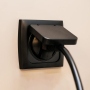 Diese in schwarzer Farbe erhältliche Einbausteckdose ist spritzwassergeschützt und mit einer Kindersicherung für zusätzliche Sicherheit ausgestattet.
