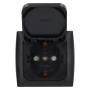 Diese Einbausteckdose ist in Schwarz erhältlich, spritzwassergeschützt und für zusätzliche Sicherheit mit einer Kindersicherung ausgestattet.